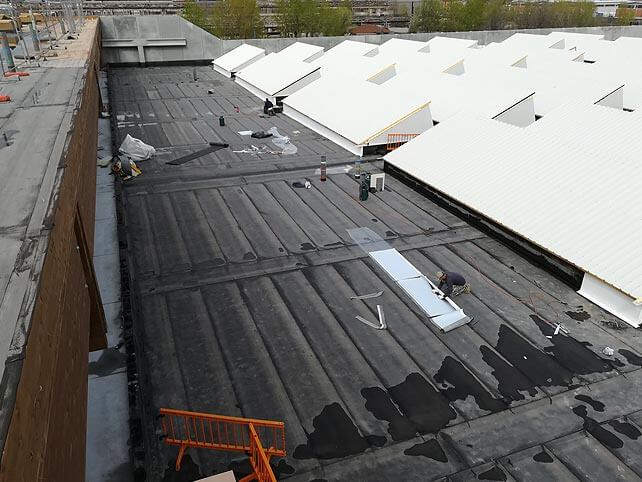 L’intervento, di oltre 20.000 mq, comprendeva infatti la realizzazione di pacchetti di impermeabilizzazione/coibentazione di tipologie differenti tra loro, con necessità e funzionalità differenti.