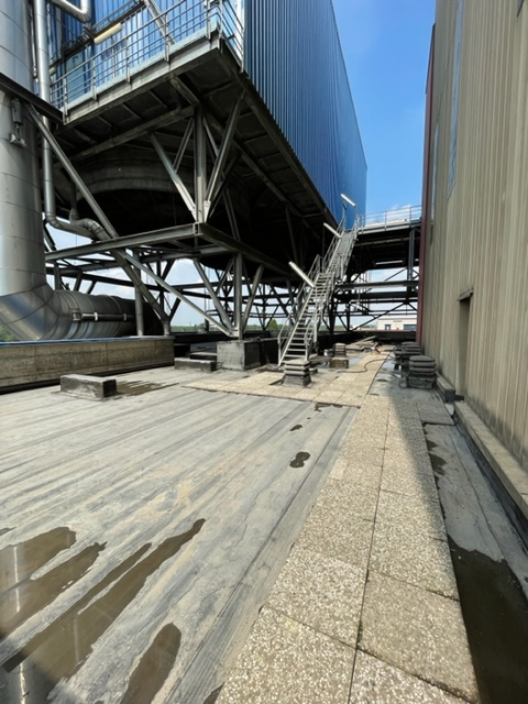 L’intervento è consistito nel rifacimento del manto impermeabile della copertura: è stato fissato meccanicamente il doppio strato del manto impermeabile esistente, per poi posare a freddo il nuovo manto impermeabile Fire Resistant e UV Resistant DERBIGUM SPR FR 4mm con contenuto di riciclato.