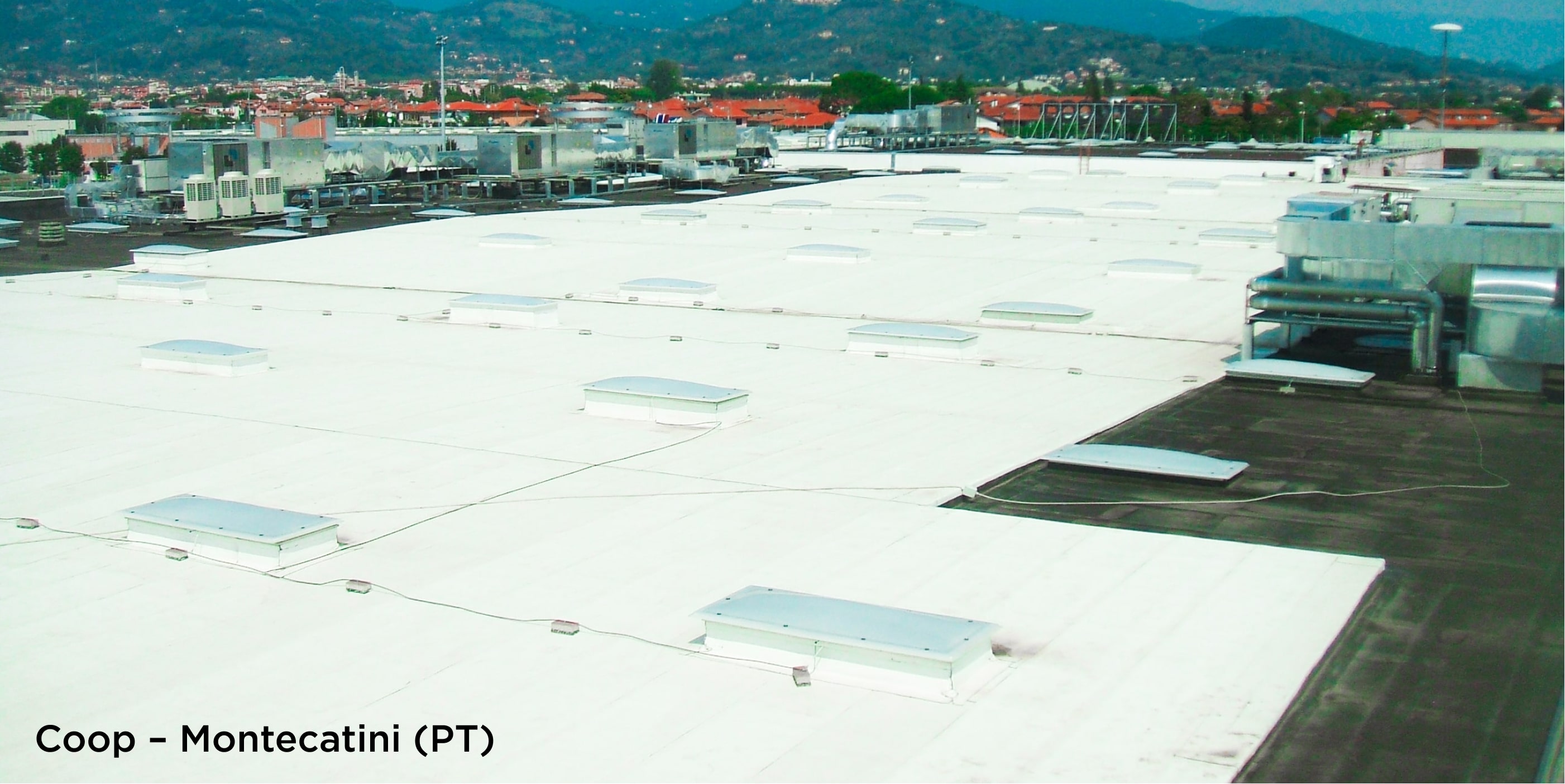 Le membrane bianche possono essere realizzate mediante speciale finitura che consente di riflettere i raggi del sole fino all’81%. L’elevata riflettanza ed emissività del prodotto consentono dunque di raggiungere anche in estate, temperature superficiali tra le più basse per i materiali di copertura, con conseguenti benefici in termini di dispendio energetico per raffrescamento dell’edificio.