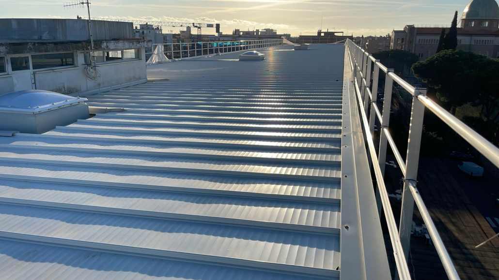 Isomec Green srl ha ultimato con successo i lavori di Rifacimento copertura metallica, mediante il rifacimento dei piani di pendenza e della progettazione, con fornitura e posa di lastra a giunto drenante (marca Sandrini, modello SANDfuture 575) presso l’istituto Fossombroni sito in via Sicilia – Grosseto (GR), per una superficie complessiva di circa 1.100 mq .