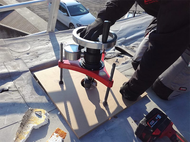 Nel contempo, grazie agli incentivi messi a disposizione dal Credito Sportivo, il Comune decide di sottoporre l’intera copertura anche ad un’importante opera di riqualificazione energetica, mediante l’impiego di un doppio strato di pannelli in EPS per un totale di 24 cm di isolante con una trasmittanza pari a circa 0,116 W/m2K. Nel mese di dicembre vengono effettuate le ultime indagini preliminari e la prova di estrazione dei tasselli che verranno impiegati per fissare l’isolante (vedi foto 2).