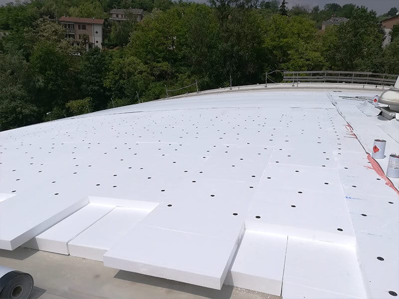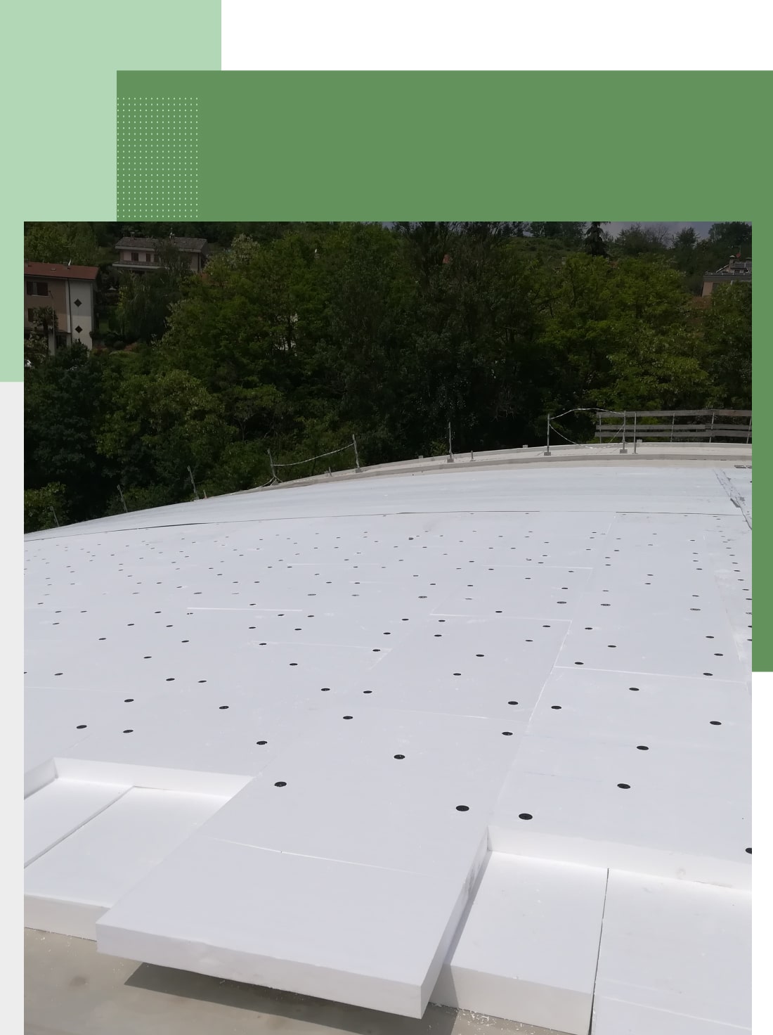 Stratigrafia: manto sintetico in Poliolefine ad alta riflettanza accoppiato con pannelli isolanti in EPS