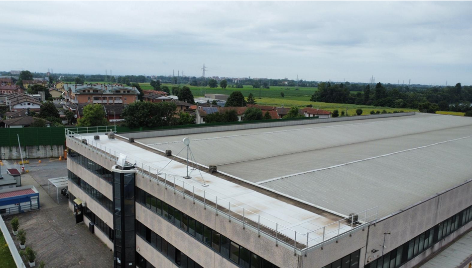 - Magazzino internazionale: rifacimento della copertura di circa 3500 mq, la sostituzione di circa di circa 3000 mq di pannelli sandwich di copertura; Impermeabilizzazione COPERTURA con elemento di tenuta DERBIGUM NT® – SISTEMA A CALDO. L’installazione di 400 ml di parapetti definitivi e 400 ml di nuove lattonerie.
